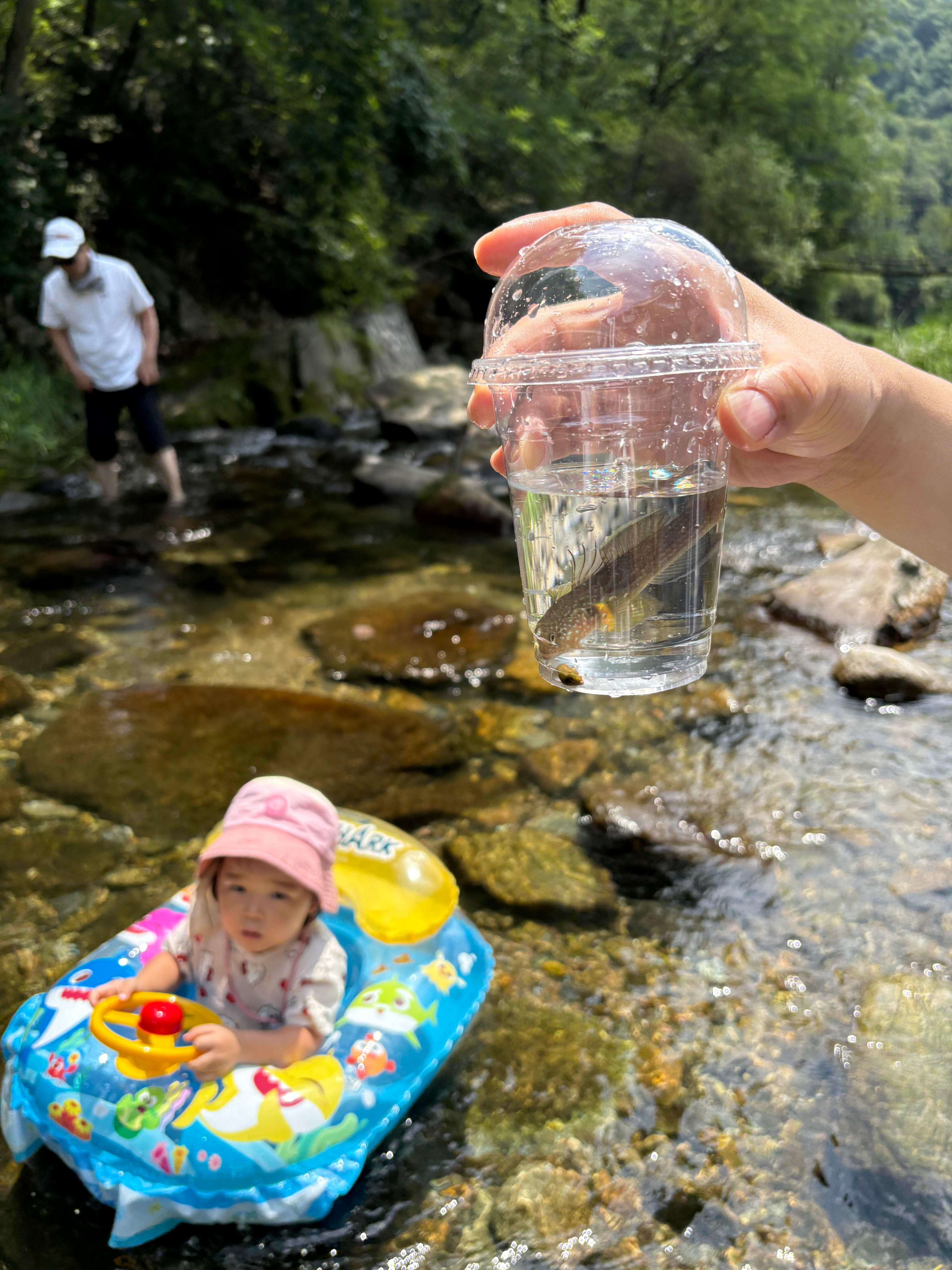 물이 시원해서 더위가 가시는 느낌이었어요. 다만 나무 그늘이 많지가 않아서 여기도 좀 거의 땡볕st이긴 합니다. 저희 아가도 다슬기를 잡았어요ㅎㅎ 다슬기가 지천에 널려있더라구요. 잡는 재미가 쏠쏠하였습니다.