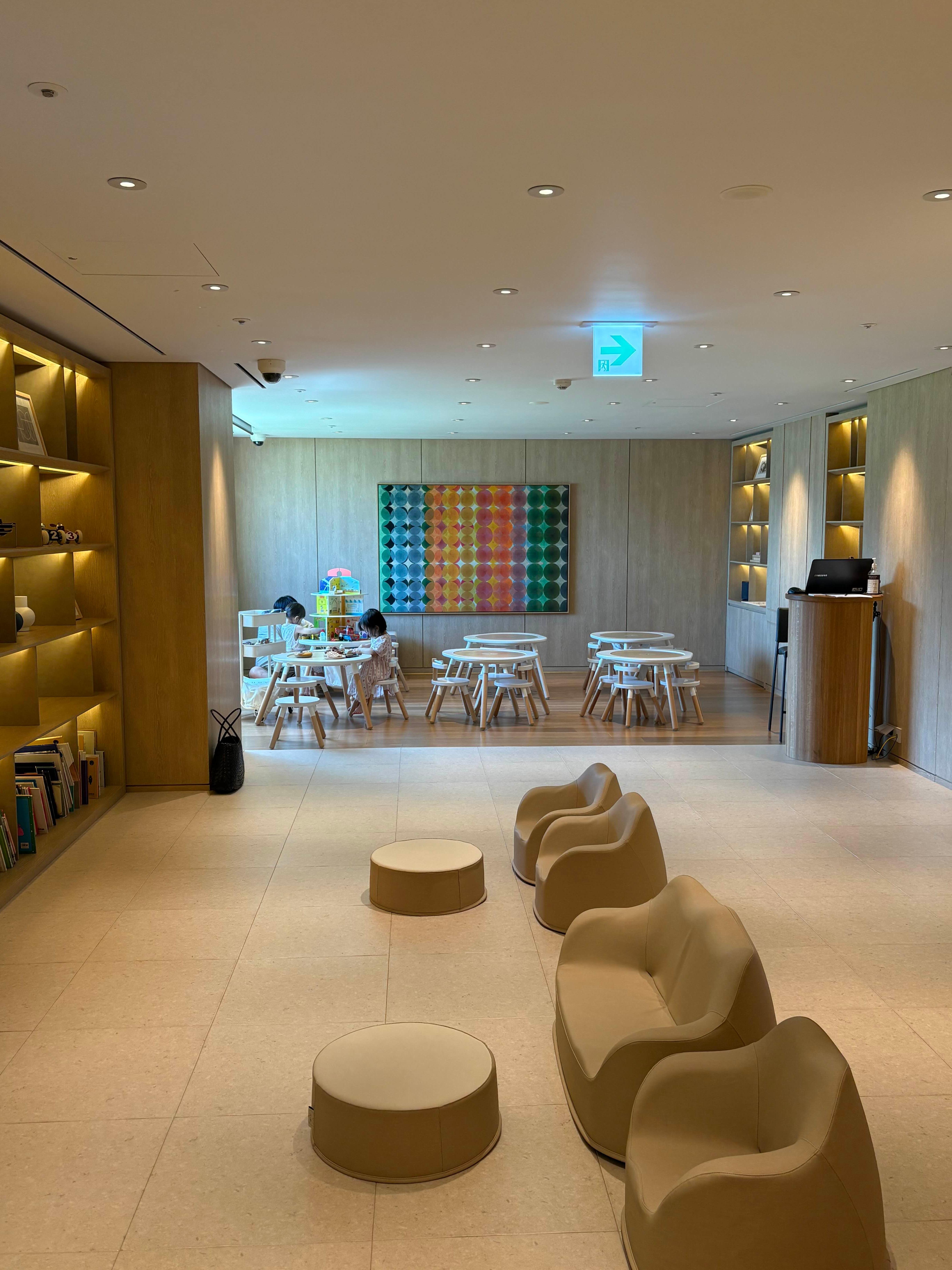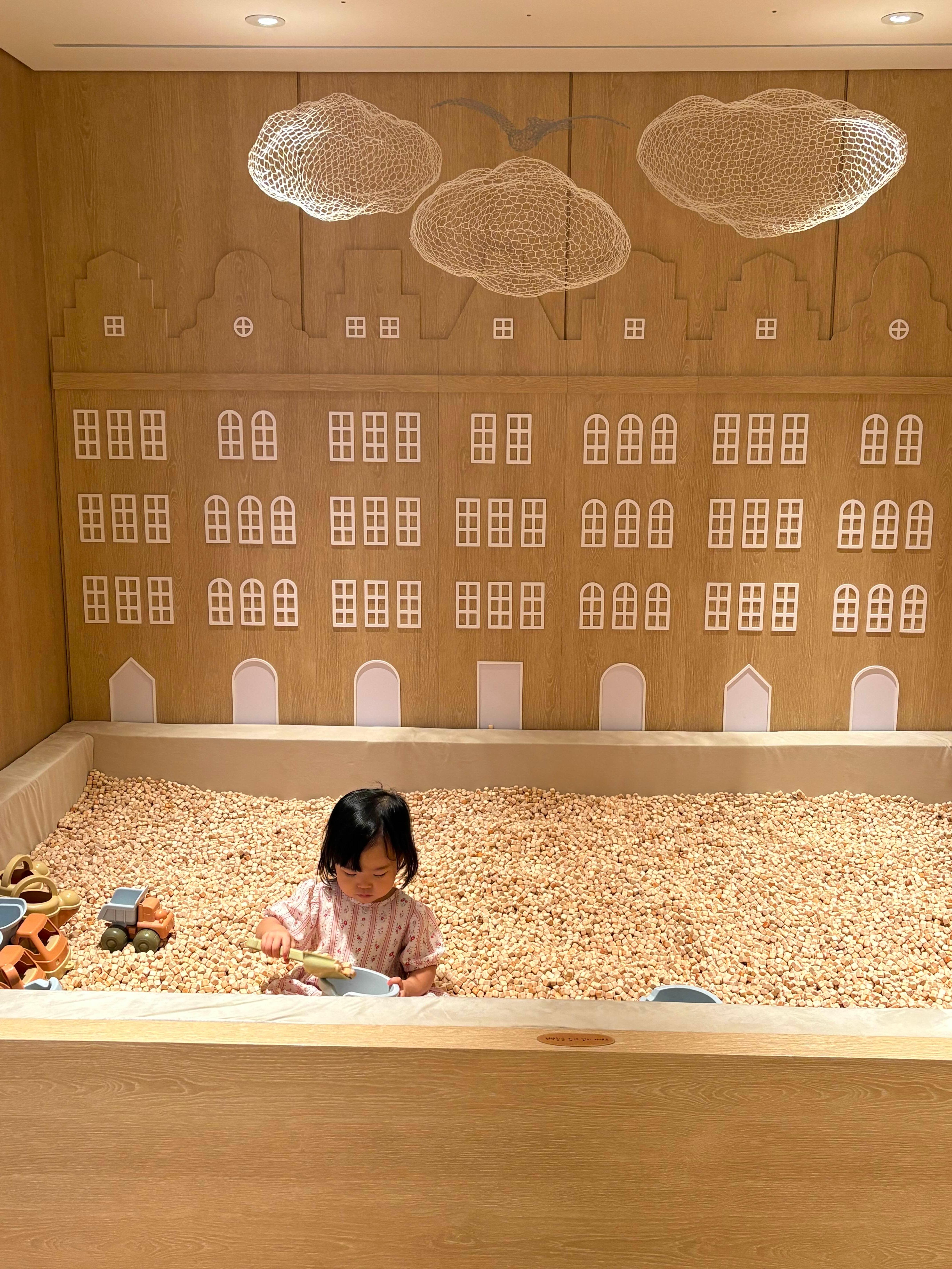 5층에 새로 문을 열었다고 들었어요. 이용시간이 저녁 7시까지로 짧아서, 체크인 당일에는 이용을 못했는데, 다행히 체크아웃 후에도 이용할 수 있다고하여 가보았습니다! 사진에는 없지만 뷰도 좋았고, 장난감도 나무로 감각적으로 만들어져있더라구요. 책상과 의자 모두 스토케 제품이었습니다. 책도 영어책, 한글책들이 예쁘게 구비되어있었어요..ㅎㅎ