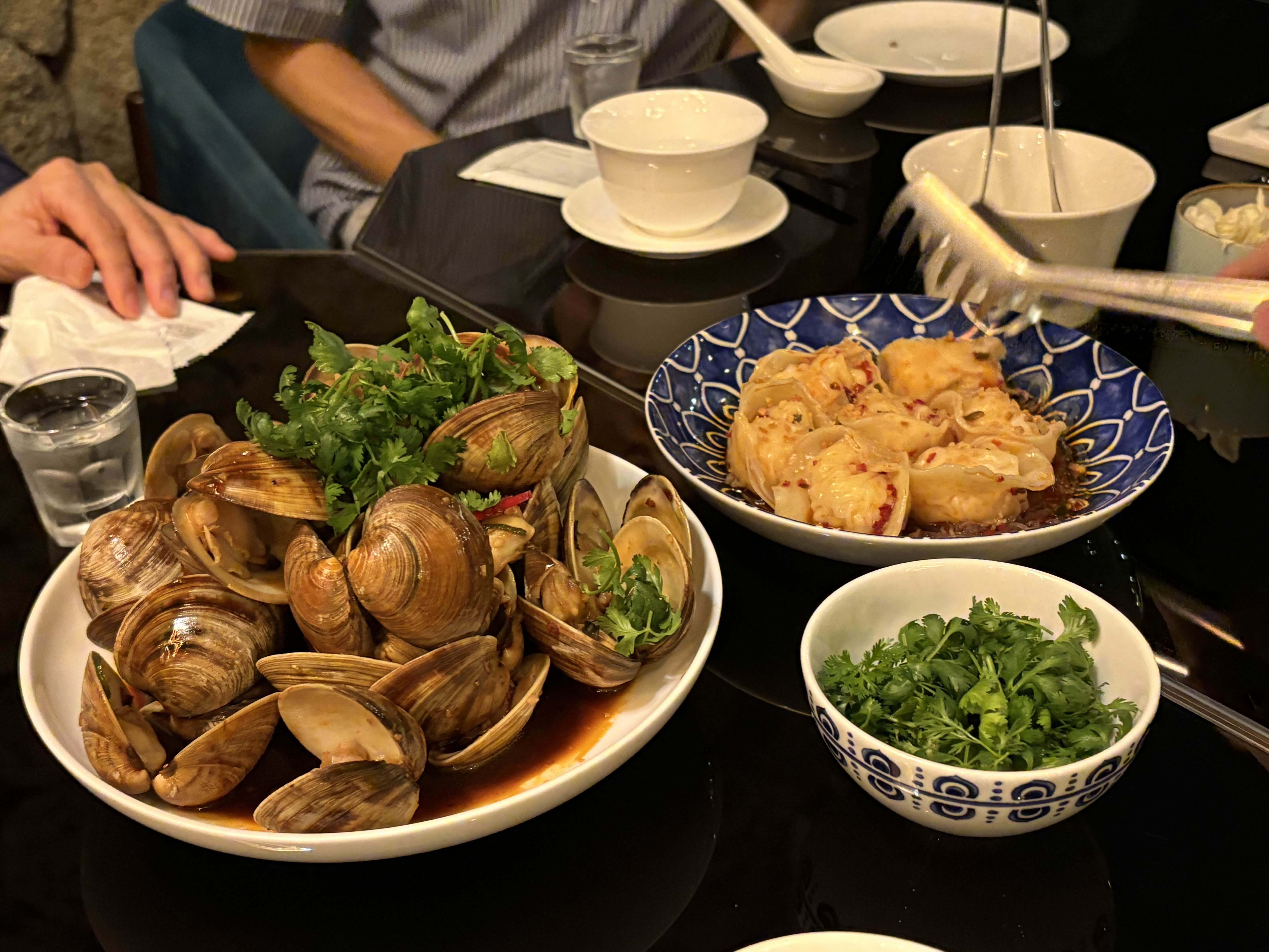 짭짤한 간장베이스의 조개볶음은 백합인듯 합니다. 요런 스타일의 조개요리를 좋아해서 시켜보았는데, 예상 가능한 맛입니다. 의외로 새우완툰이 너무 맛있었어요! 흑초의 새콤함과, 탱글탱글한 새우살 & 살짝 매콤한 소스가 어우러져서 저 혼자 한접시 정도는 클리어 하겠더라구요..