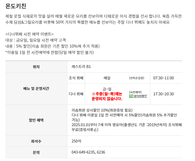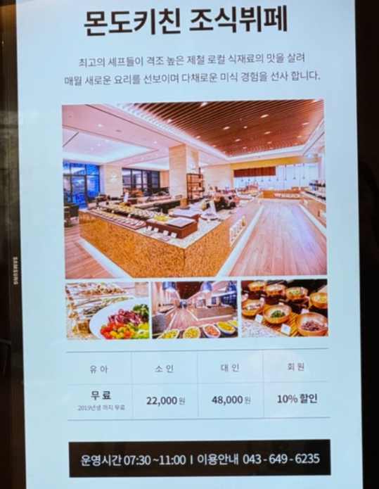 몬도키친 조식 뷔페 가격 정보를 참고해주세요! 조식은 선착순으로 가서 먹으면 되고, 예약 할인은 따로 없더라구요. 저는 법인회원이라서 10% 할인을 받아서 이용했습니다. 이 곳은 특이하게 7세 이하 영유가 까지는 무료라고 하네요!(혜자혜자) 저희 아기는 32개월이라 무료로 이용했어요. 따로 서류를 확인하지는 않았습니다!
