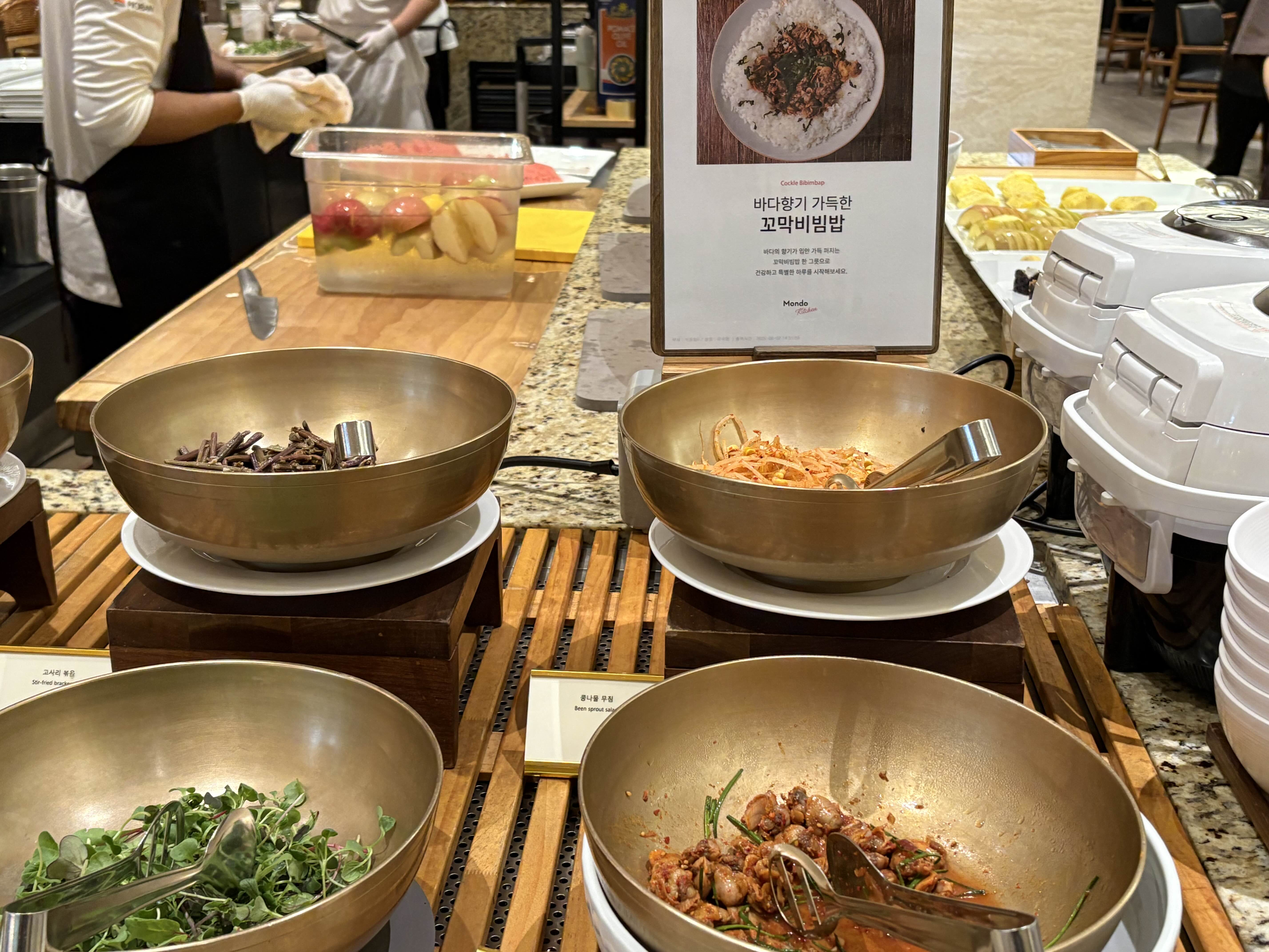제가 정말 맛있게 먹었던 것은, 꼬막비빔밥이에요ㅎㅎ 한식코너도 잘되어있었어요. 엄마는 명태회무침과 쭈꾸미가 맛있다고 하더라구요. 저는 마파두부가 맛있었습니다! 그리고 예전에는 베이커리 코너에서 이즈니 버터를 썼었다고 했는데, 지금은 프레지덩 버터가 있더라구요. 저는 뭐 둘다 좋아요ㅎㅎ 크롸상도 너무 맛있었습니다! 아 너무 조금먹고 온것 같네요 흑흑 ㅠㅠ