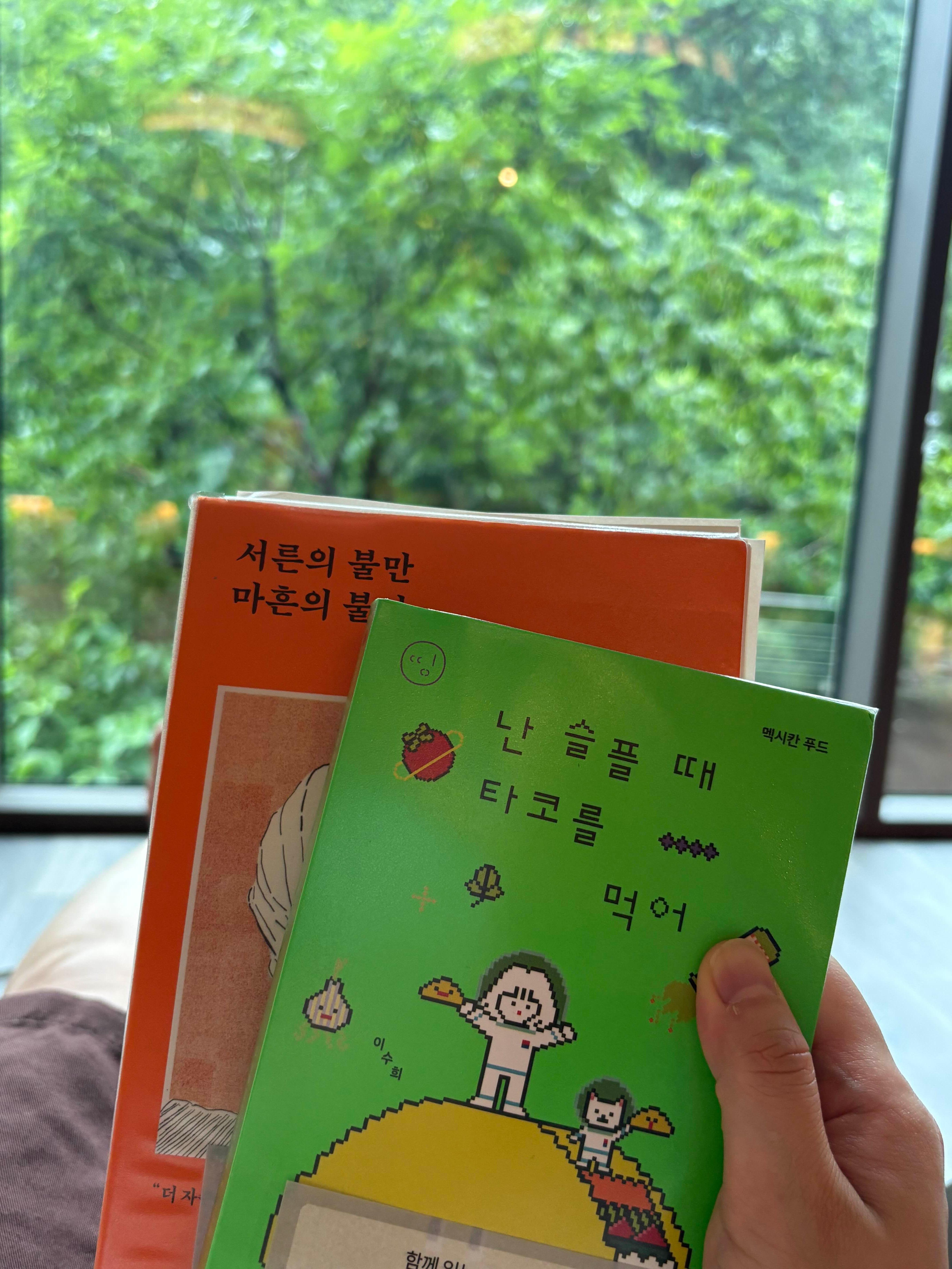 책을 두권 집어서 자리를 잡아 봅니다. 사방이 나무인 휴게공간에 거의 누워앉아서 책을 읽으니 진짜 너무너무너무 행복했습니다 ㅠㅠ 할머니에게 전화가 오기 전까지는 말이죠..ㅠㅠ 아이가 집에가자고 성화를 부려서 온미담에서는 한시간 밖에 못있었지만, 정말 좋은 공간이었습니다.