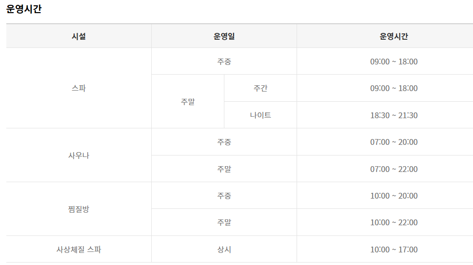저는 첫날에는 스파를 이용했고, 둘째 날에는 사우나+찜질방(온미당)을 이용했어요. 투숙객은 30% 할인된 가격으로 이용할 수 있습니다. 네이버에서도 예약이 가능한데, 네이버가 2백원 더 비싸더라구요..ㅎㅎ 그래서 그냥 현장에서 투숙객으로 할인받아서 구매했습니다. 운영시간과 이용요금을 참고해주세요.