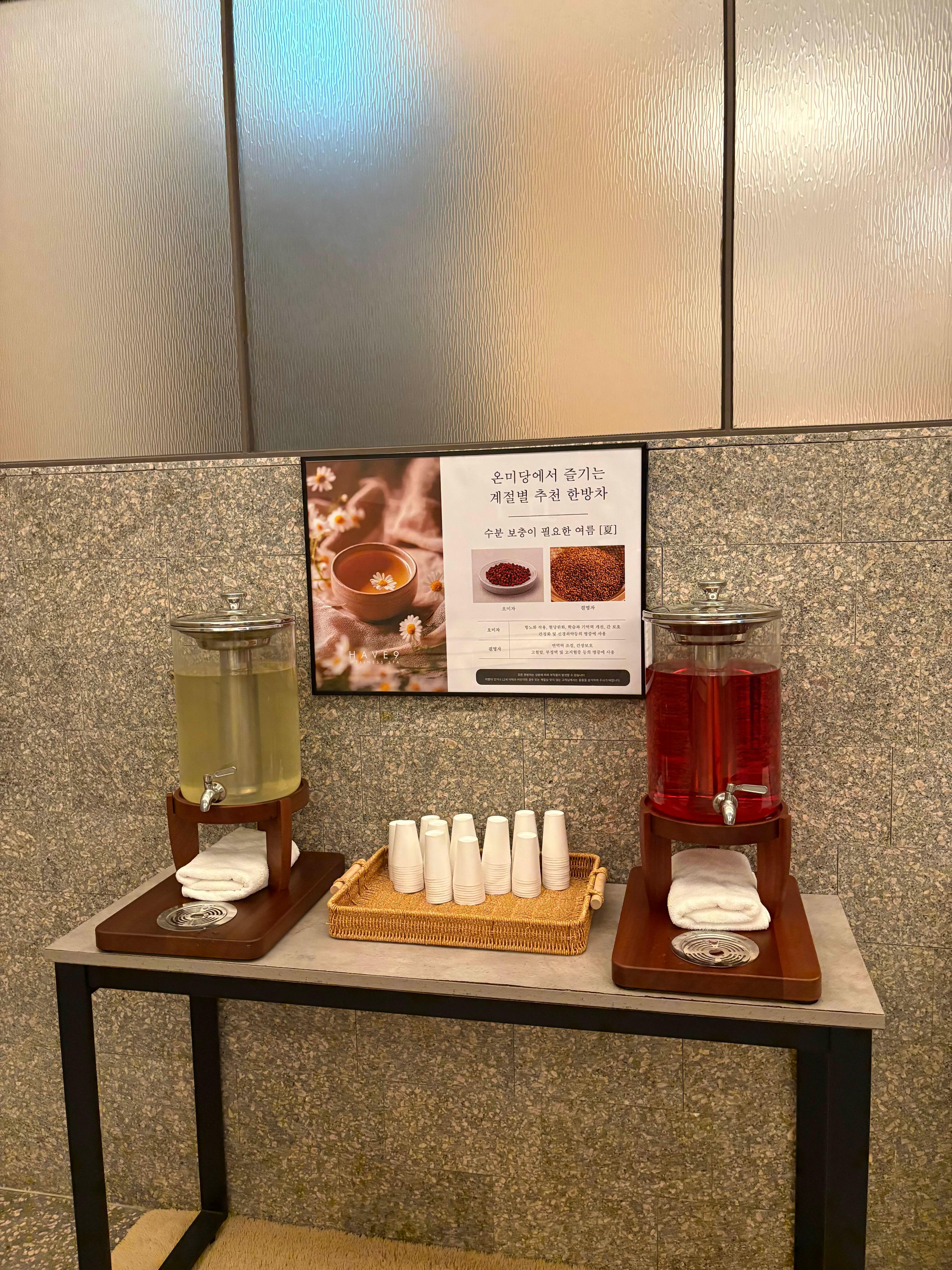 불가마와 소금방도 있어요. 사우나 밖에는 결명자차와 오미자차가 구비되어있습니다.(요런 센스쟁이들). 곳곳에 이용객들이 쉴 수 있는 독립된 공간들이 있어요. 사람이 없는 시간에 즐겨서 그런지 더더욱 좋았습니다.