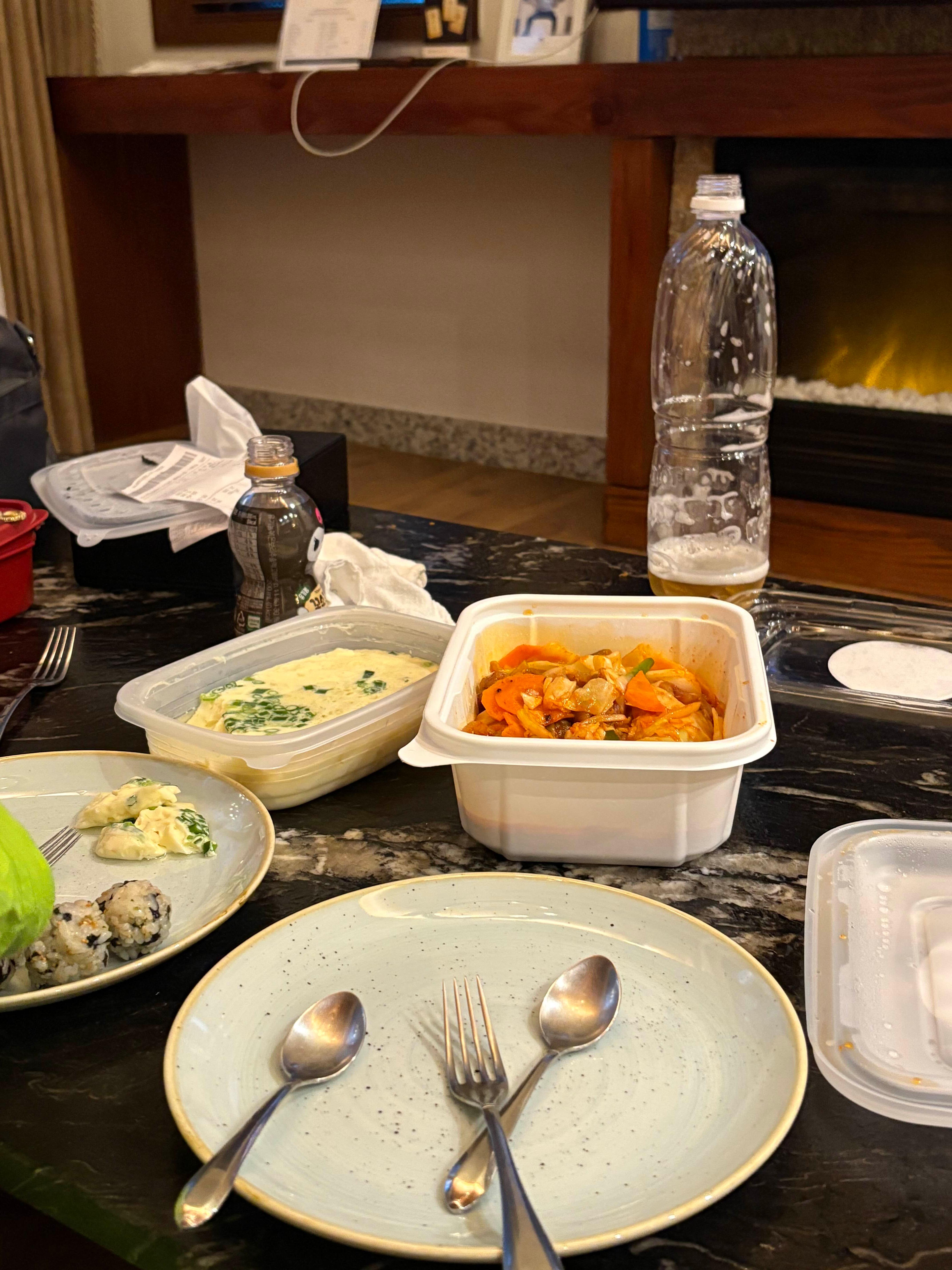 제가 서두에 포레스트의 숙박 경험은 한번이면 족하다고 쓴 이유중에 하나는,, 편의시설이 모여있는 곳으로(체크인 하는 건물) 나가는 것이 좀 불편해요 ㅠㅠ 저희가 간 날에 비가 많이 와서 나가기가 참 싫더라구요. 그래서 리조트내의 치킨과 드시옹 이라는 룸서비스를 저녁으로 이용했는데, 일단 배달 받기까지 시간이 너무 오래걸렸고, 다양한 매뉴가 아니라서 아쉽더라구요ㅠㅠ 저는 치실을 놓고와서 편의점에 너무 가고싶었는데, 카트를 호출해서 가야해서 귀찮아서 그냥 포기했어요 ㅠㅠ