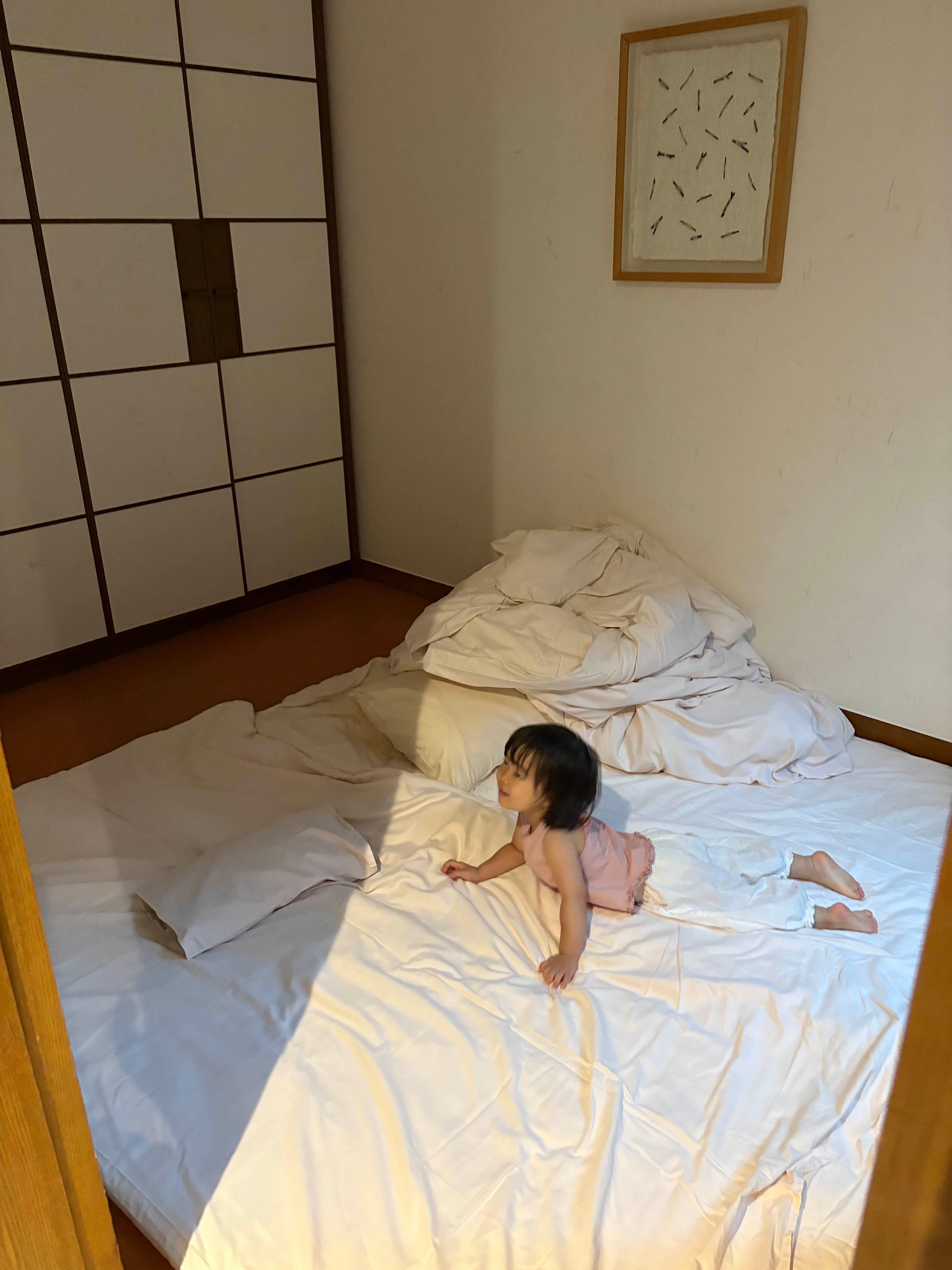 나머지 방 한개는 황토방 컨셉이에요ㅎㅎ 놀러간 날에 비가 많이 와서 으슬으슬 춥더라구요. 바닥에 이불을 깔고 보일러 틀고 따땃하게 잤습니다. 바닥에 이불만 깔아줘도 좋아하는 딸..ㅎㅎㅎ 이 방에 있는 창을 통해서도 밖에 나무가 살짝 보여요!